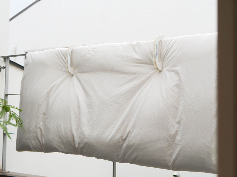 厚みのあるお布団もしっかりとホールドし、ベランダの太い柵でも使える頼れるランドリーグッズです。