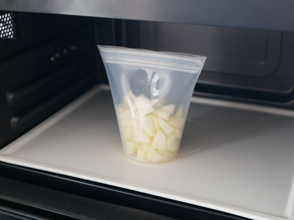 ※レンジ調理をする際は、Zip Top®の口を必ず開けた状態で調理し、取り出す際はミトンなどをお使いください。また、食材の水分が溢れる場合がありますので、受け皿のご使用をおすすめします。