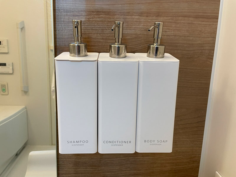 以前は、ラック型の収納にディスペンサーを置いていたのですが、子ども用のボディーソープは簡単に手に届いて取られてしまい、シュッシュッシュといたずらされ、洗い場が泡だらけに。1人がやると必ずもう1人もやりたがり、あっという間に詰め替えがなくなってしまうことが続きました。