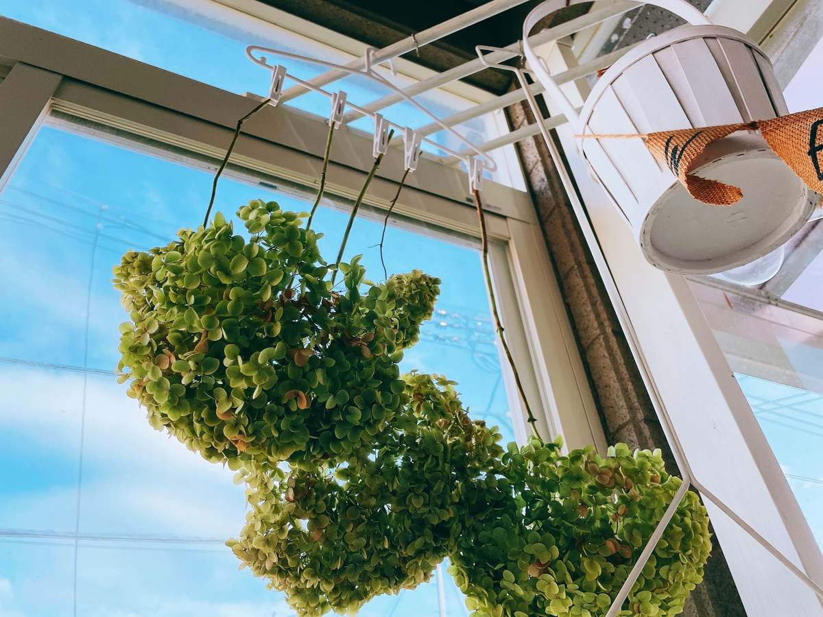 我が家の庭に植えてあるアナベルのドライフラワー作りにも使用してみました。洗濯バサミの吊るす部分が太くしっかりしているので、揺れも少なく安定して干せましたよ。