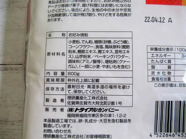 トライアル 本場風お好み焼粉 600g 159円(税込)