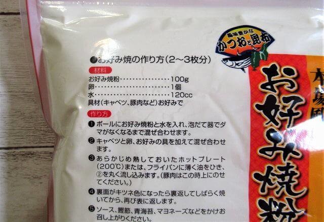 本場お好み焼粉100gで2~3枚のお好み焼きが作れる