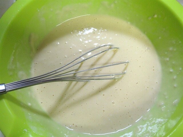 - お好み焼粉と卵、水をダマがなくなるまで混ぜ合わせる ![]()