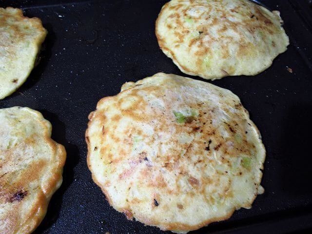 裏面の作り方では「100gで2~3枚分」とありますが、実際に作ってみるとお玉1杯分くらいの量で、2枚ほどが出来あがりました。