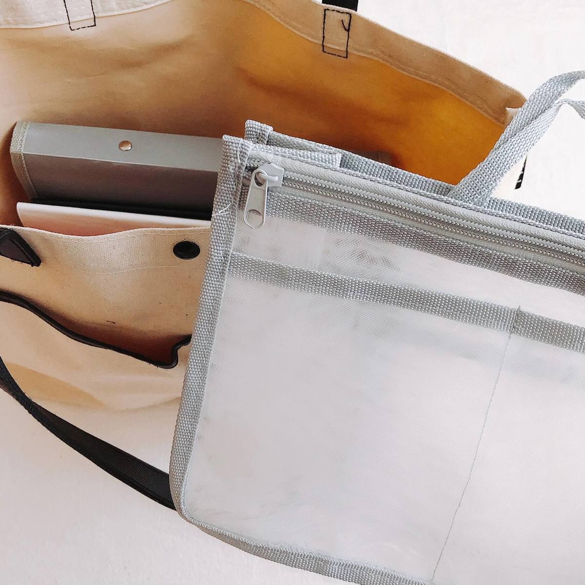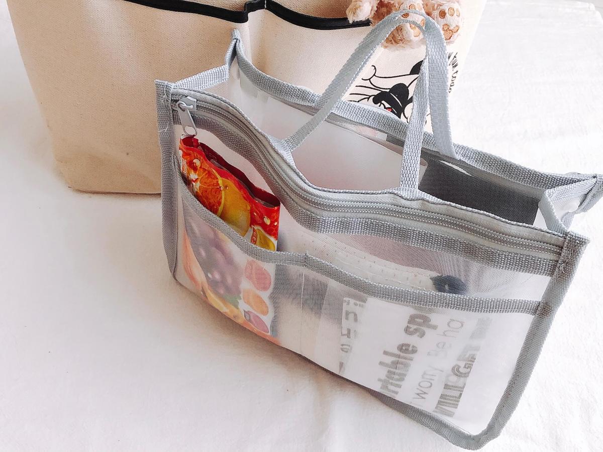 グレーにメッシュのデザインが無印良品っぽい!と思わず手に取ったこのバッグインバッグ。