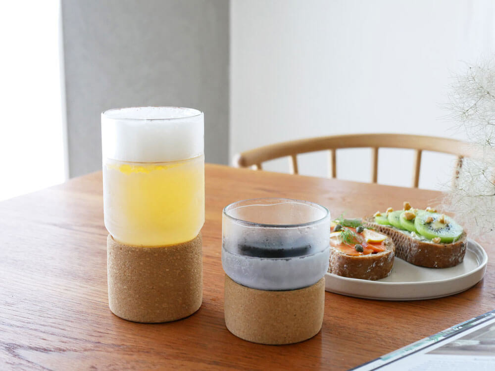 さらにグラスの持ち手部分にあたるコルクが、結露で発生した水を受け止め、冷たいグラスに直接手を触れずに、氷で薄めず最後の一滴まで冷たく美味しい飲み物を楽しめます。