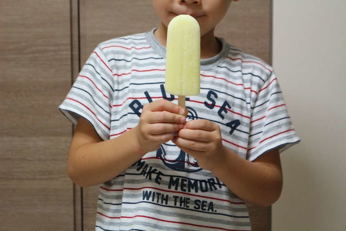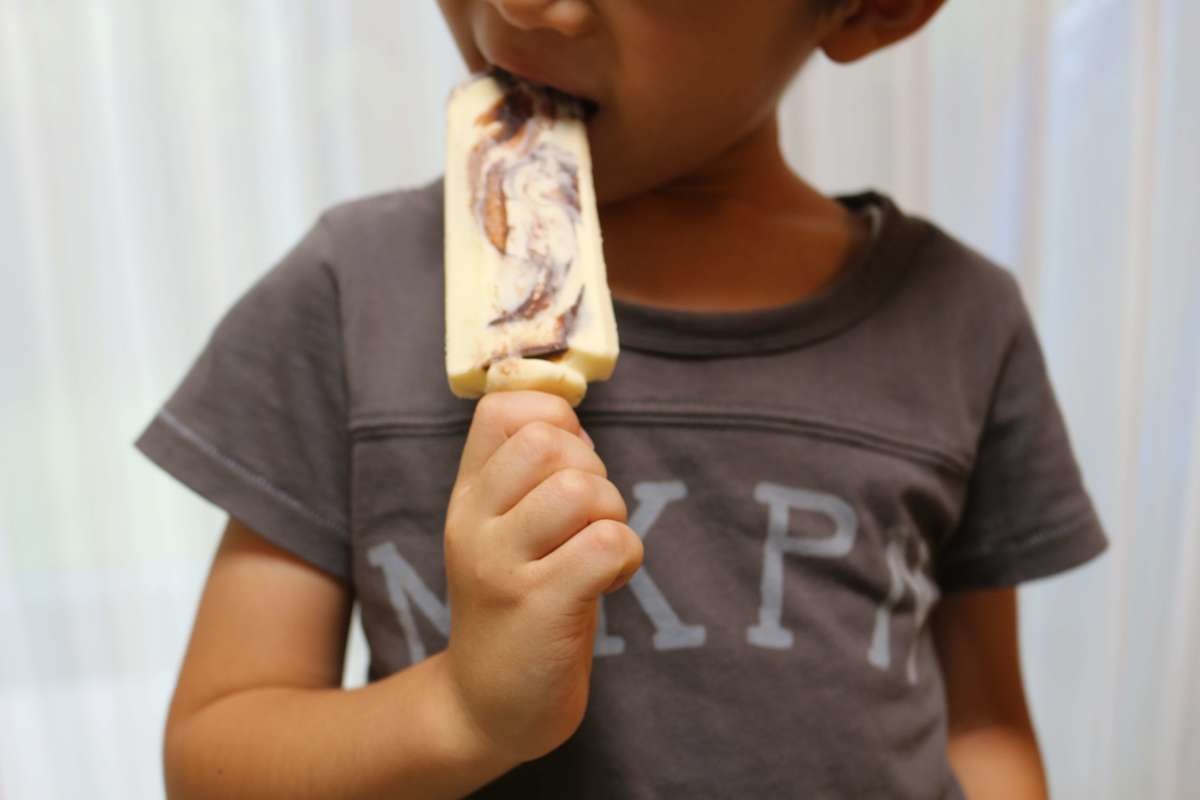 大人から見ると、物足りないサイズで1本約25円感はありますが、子どもたちには見慣れないふにゃふにゃ棒に興味津々。子どもたちが早く食べないと、アイスが溶けて棒から落ちそうでヒヤヒヤします(アイスだけに)……。