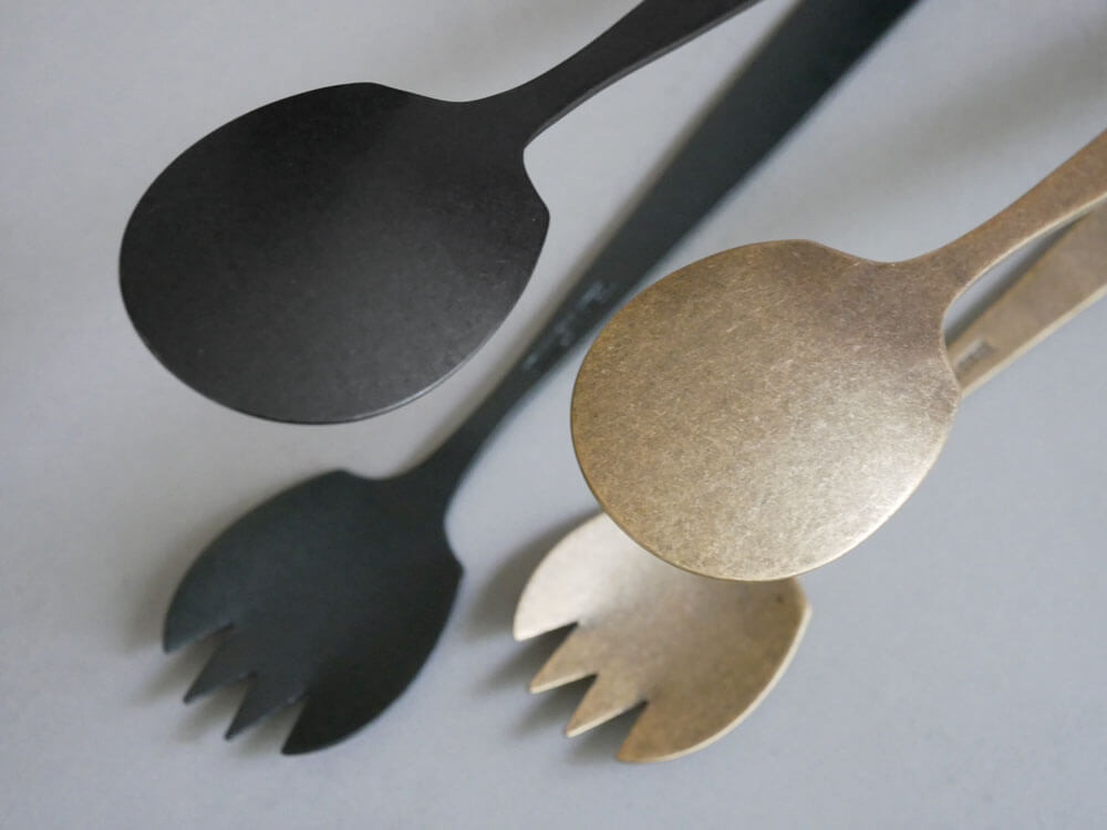 片方はスプーン型、片方はフォーク型になっているので取り分けはもちろんのこと、すくったり、和えたりしやすいのが◎!