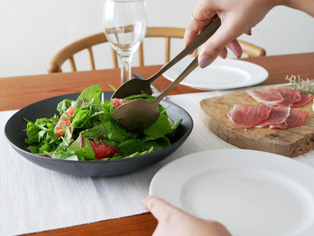 長さ23cmの「大」は、大皿サラダやパスタなどをざっくりと取り分ける時に。一度に多くの量をつかめ、普段の食卓からパーティーの際にも活躍しますね。