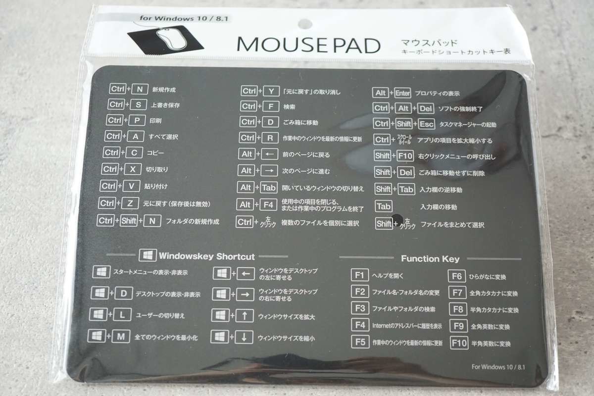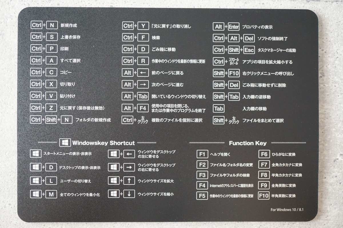 こちらはWindows10と8.1用の「キーボードショートカットキー表」つきのマウスパッドです。