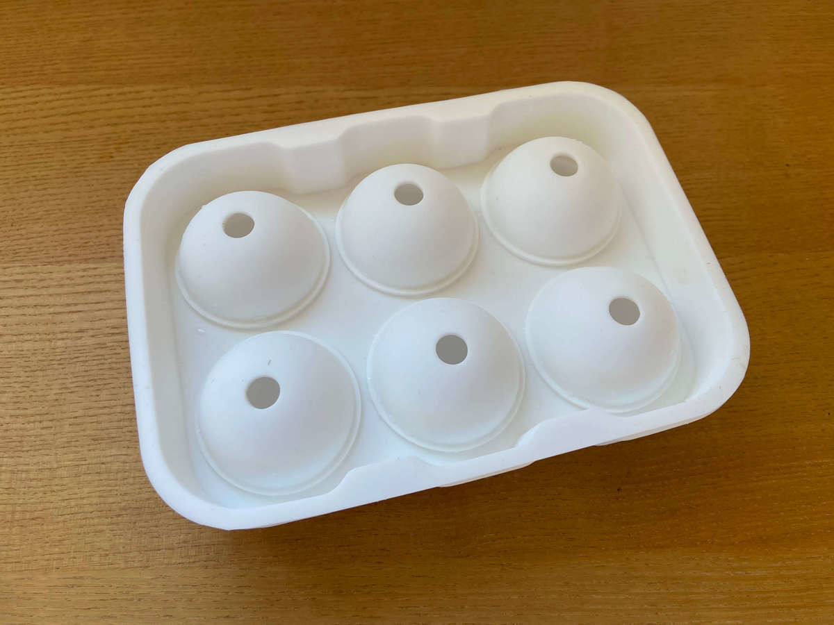 直径4.5㎝の丸氷が6個ぶん作れる、製氷機。同じシリーズに直径約6cmの丸氷1個ぶん作れる商品もあります。