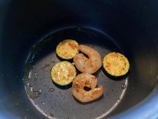 そこに食材(ズッキーニや冷凍シーフードなど)を追加投入して、パパッと炒め、ハーブソルトで味つけするだけ。