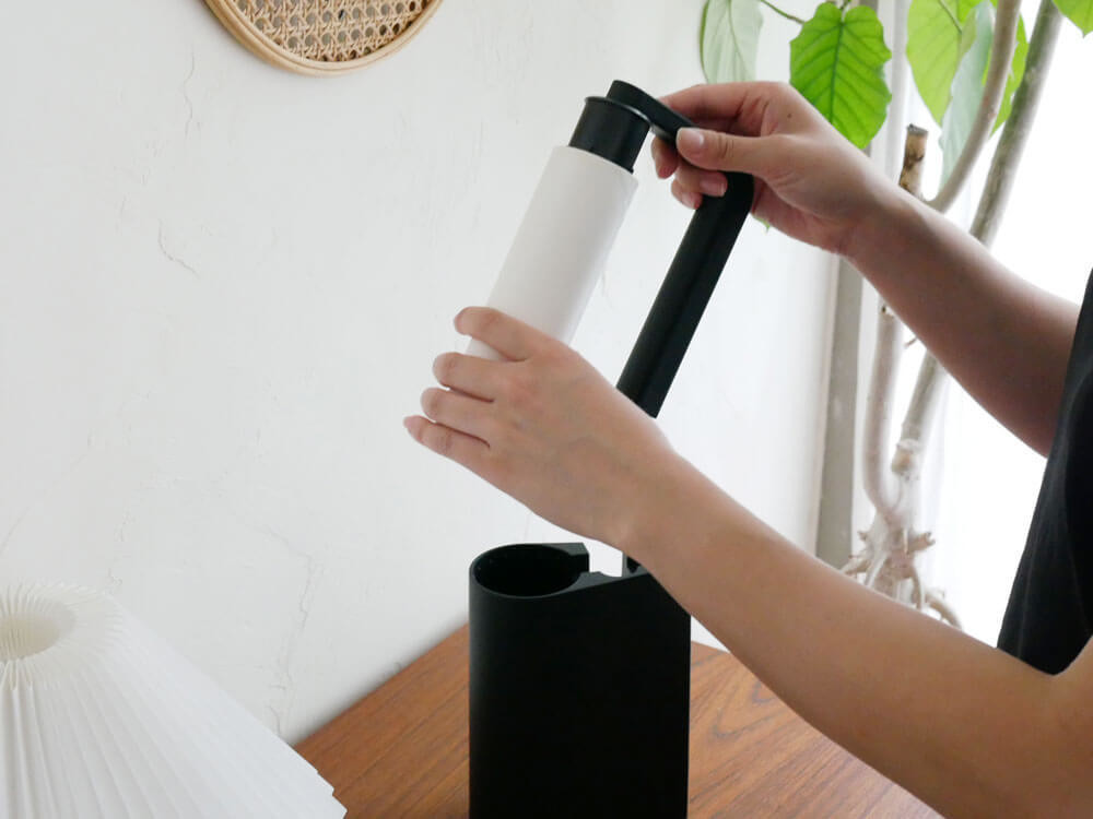 従来品のような長い持ち手がないので、サイズは約 幅135x奥行70x高180mmとスッキリとコンパクト!