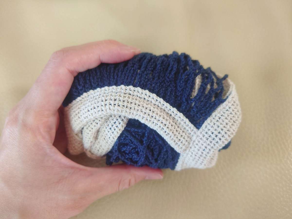こちらは、カラーがネイビーに取っ手が白いタイプ。他にも様々なカラーがありました。