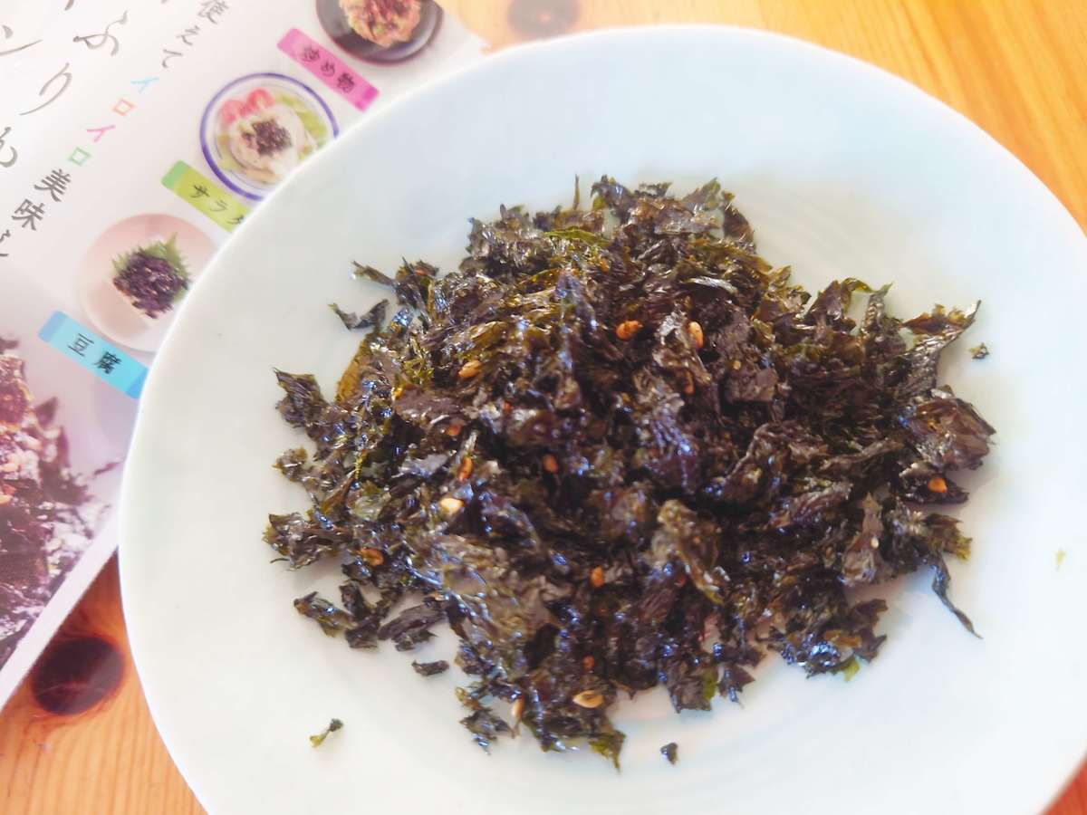 フレーク海苔を砂糖、ごま、塩、ごま油やとうもろこし油、えごま油と合わせて炒めたふりかけです。