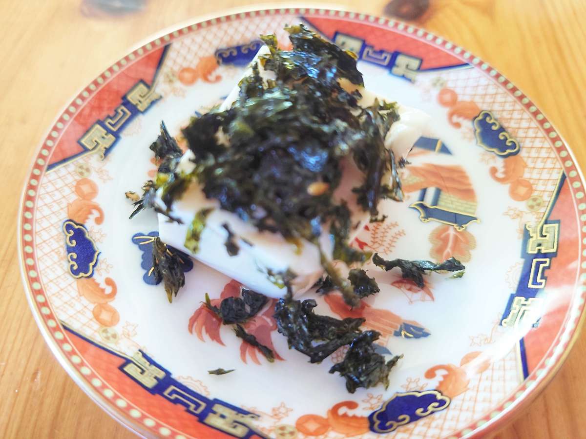 豆腐のやわかさと海苔のサクサクな食感が合う!さらにごまを増量して食べてみたら美味しそうです。
