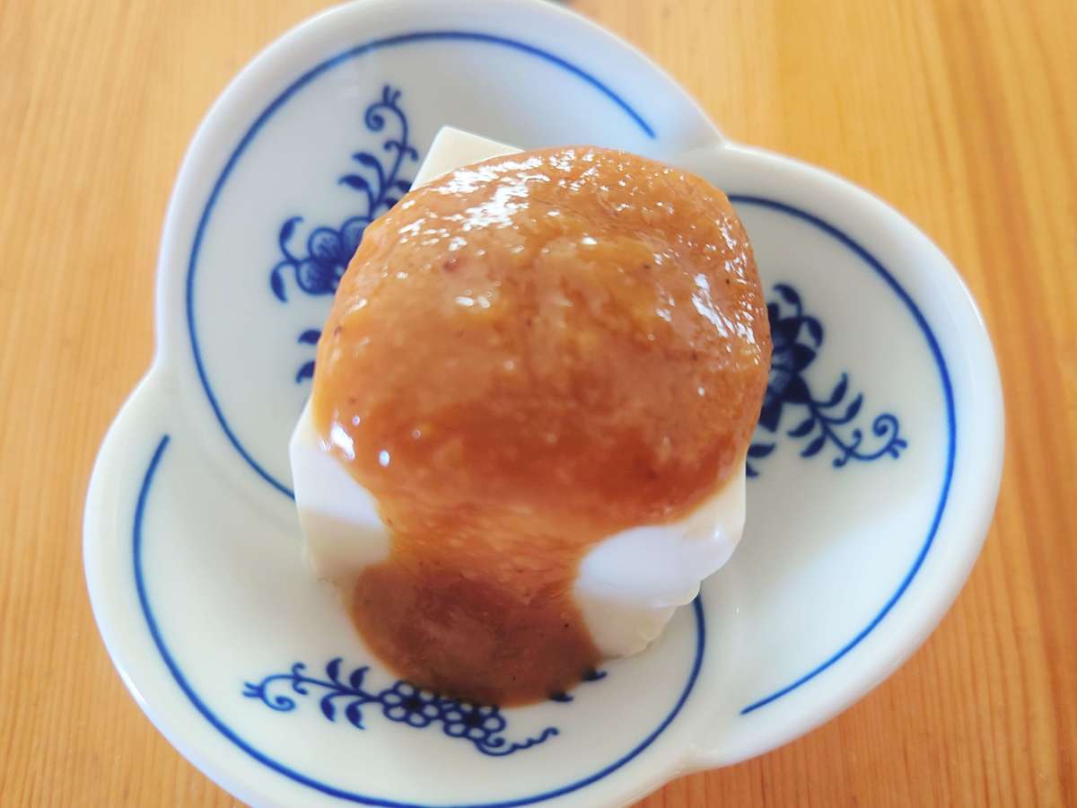 豆腐に乗せると、単体で感じた甘さが気にならなくなります。