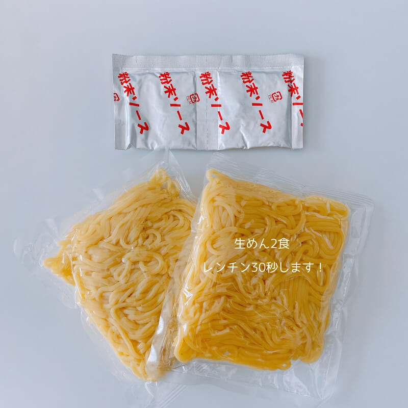 中身は、こんな風に3食入りの焼きそばに似た感じの商品で、ソースは粉末です。