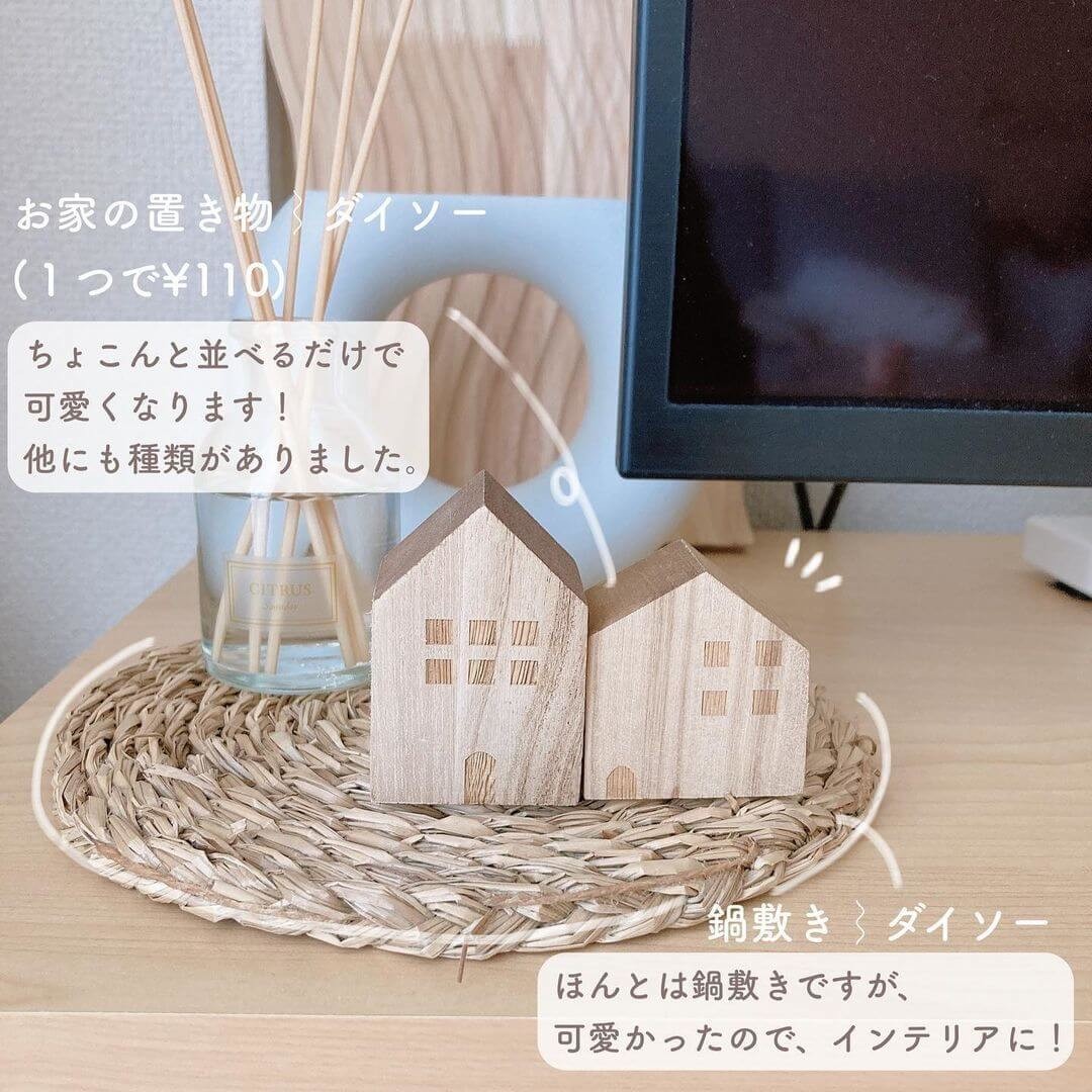 @piyopiyo_life_222さんが「本当に今の100均はすごい!」と紹介してる高見え雑貨は、まさかのダイソーの「鍋敷き」と「木製の置物」。