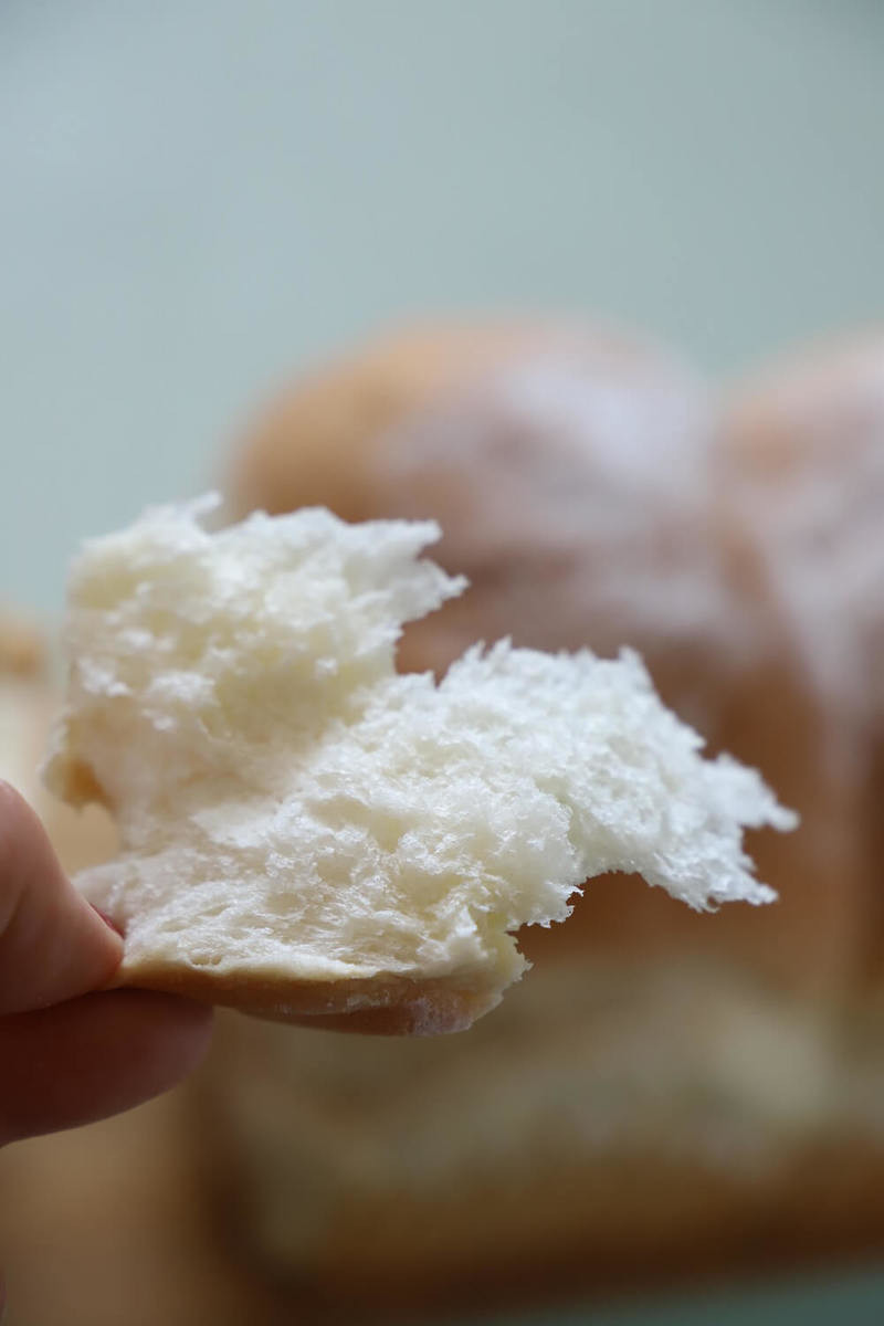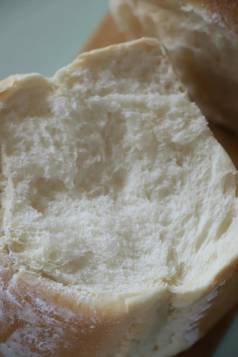 パン生地のきめ細かさを見るには、ナイフなどを使わず手で割ってみるとわかりやすいですよ。