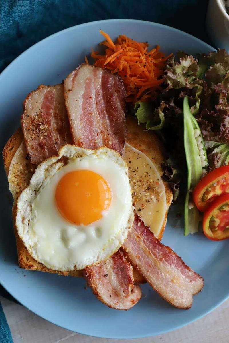 パンの上にのっている、厚みのあるおいしそうなベーコンが気になりませんか?