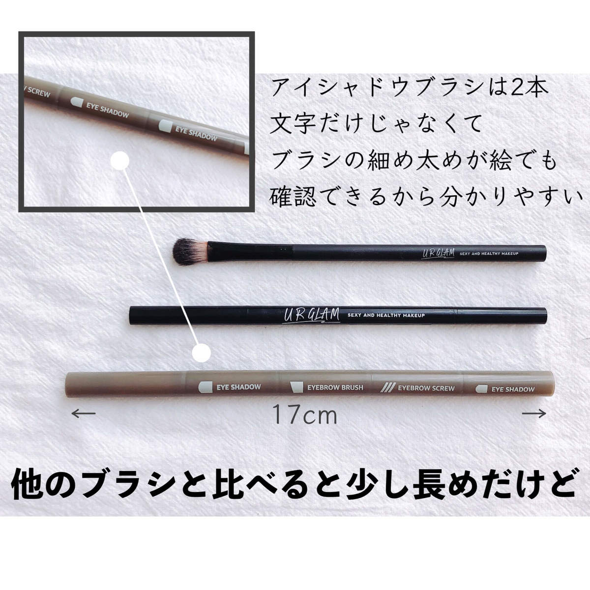 1本の長さは17cm、他のブラシと比べると写真のように少し長めでした。