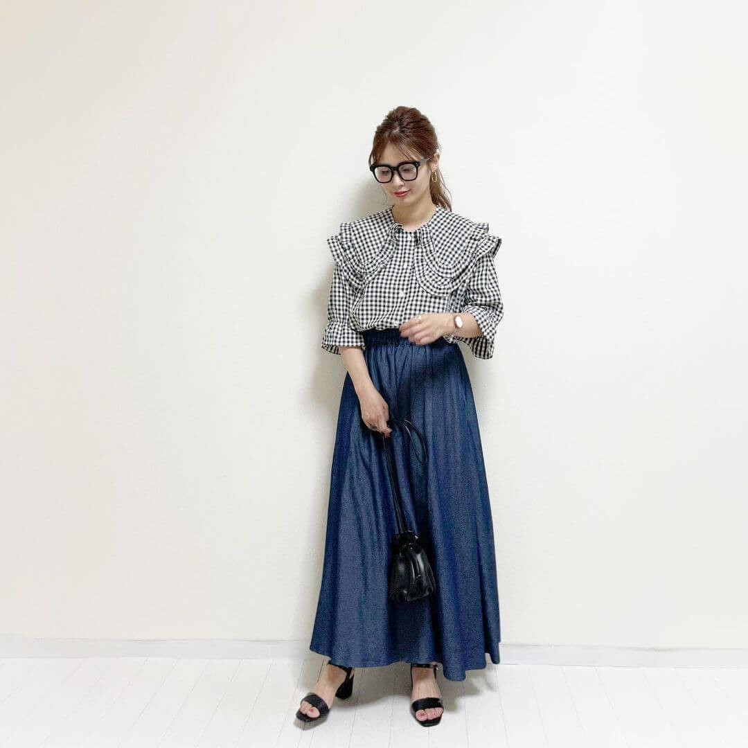 ビッグカラーのギンガムチェックブラウスをコーディネートして、旬なガーリースタイルを実現!