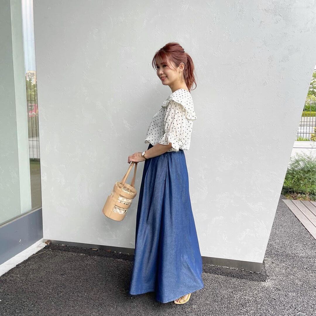 ドットブラウスを合わせたレトロ可愛いコーデ