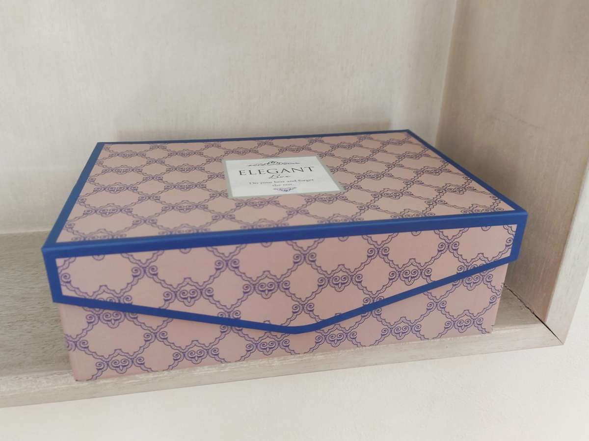 エレガントなベージュにブルーのフチがおしゃれなこちらのボックスは、高級感たっぷりです。