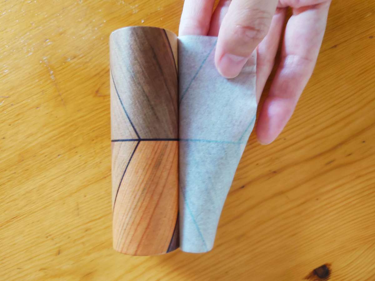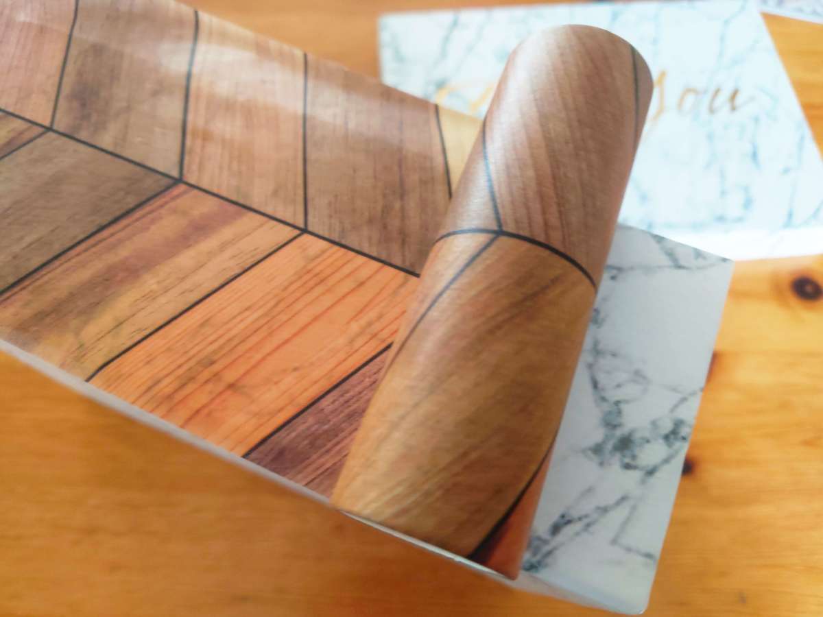 シワが残っていても木目柄で目立ちにくいので、リメイク初心者でも安心です。