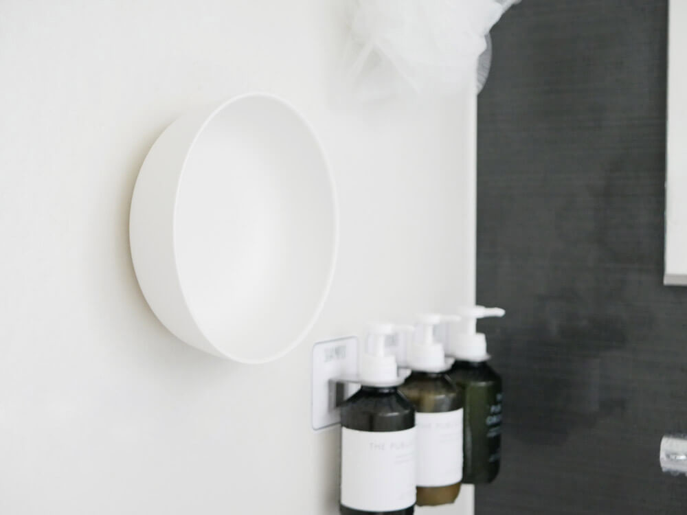強力マグネットで壁面に付ければ、入浴中やお掃除の際に邪魔にならずに便利。水が溜まらず水切れもいいので、カビやヌメリもちゃんと防ぎます。