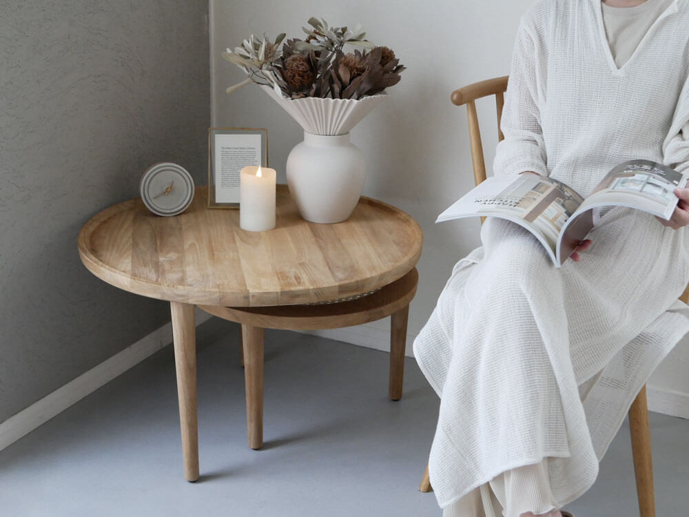 リビングでのソファ前に置くテーブルとしてはもちろん、部屋の一角に置くディスプレイ棚としてもGOOD。