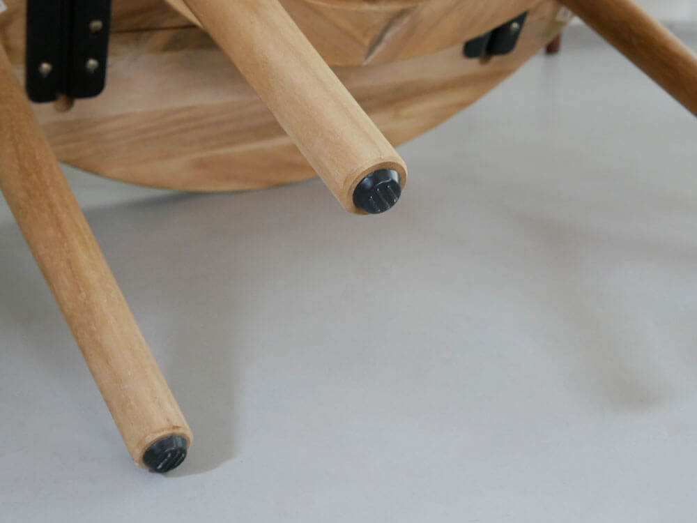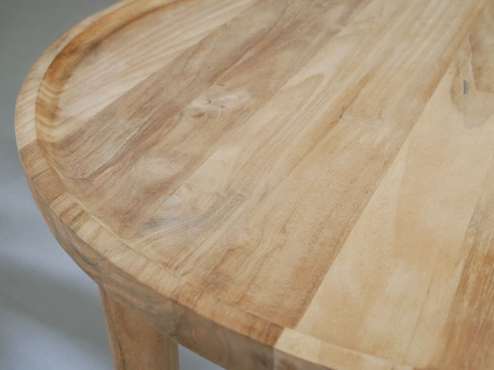 上品で落ち着いた木目が特徴の樹齢30年以上のチーク材を使っています。チーク材は世界三大銘木のひとつ。金褐色や黄白色をしており、紫外線に当たり続けると飴色へと変化し、深みを増していくのが特徴。