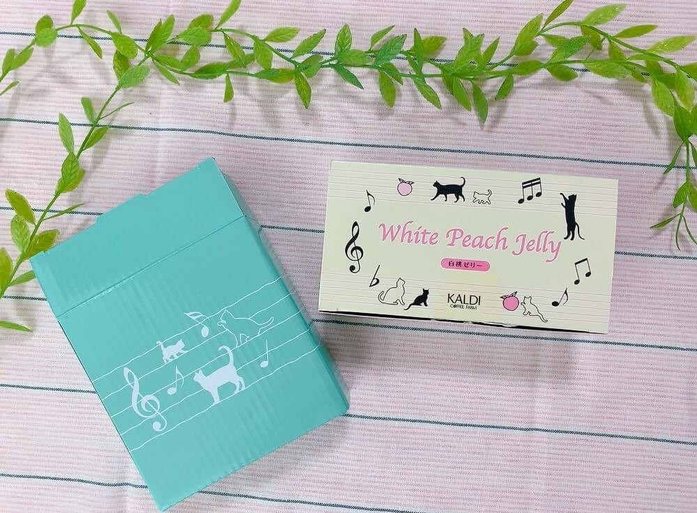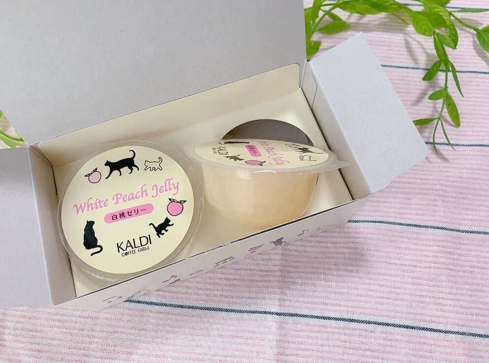 こちらもネコちゃんのイラストがかわいい、カルディオリジナルのピーチゼリーです。2個入り。