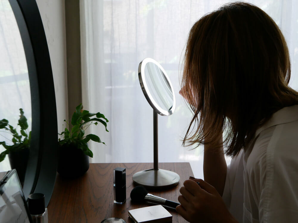 顔を近づけると自動で点灯するセンサーライト機能付の「メイクアップミラー」。