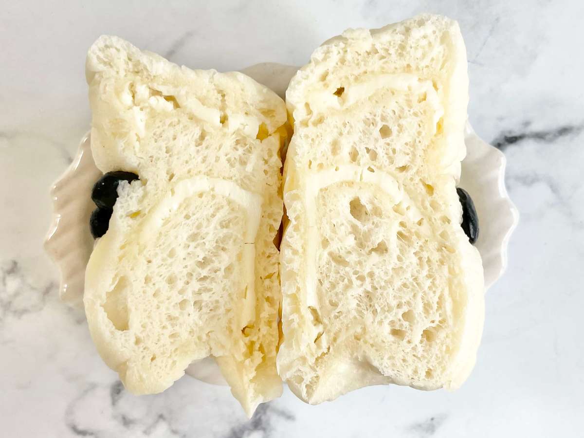 封を開けるともちもちっとした触感の生地が登場。蒸しパンに似ています。
