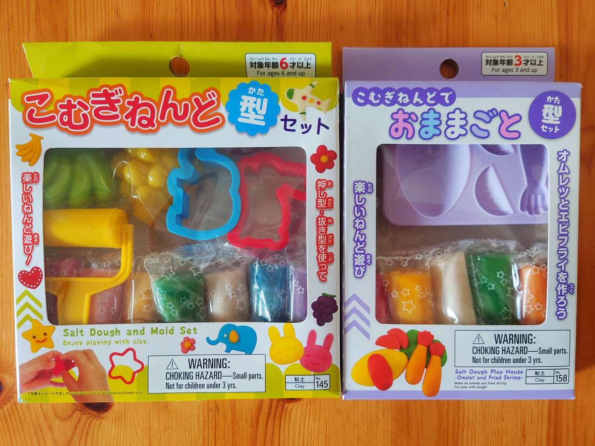 対象年齢は、ねんど型セットが6歳以上、おままごとセットが3歳以上。