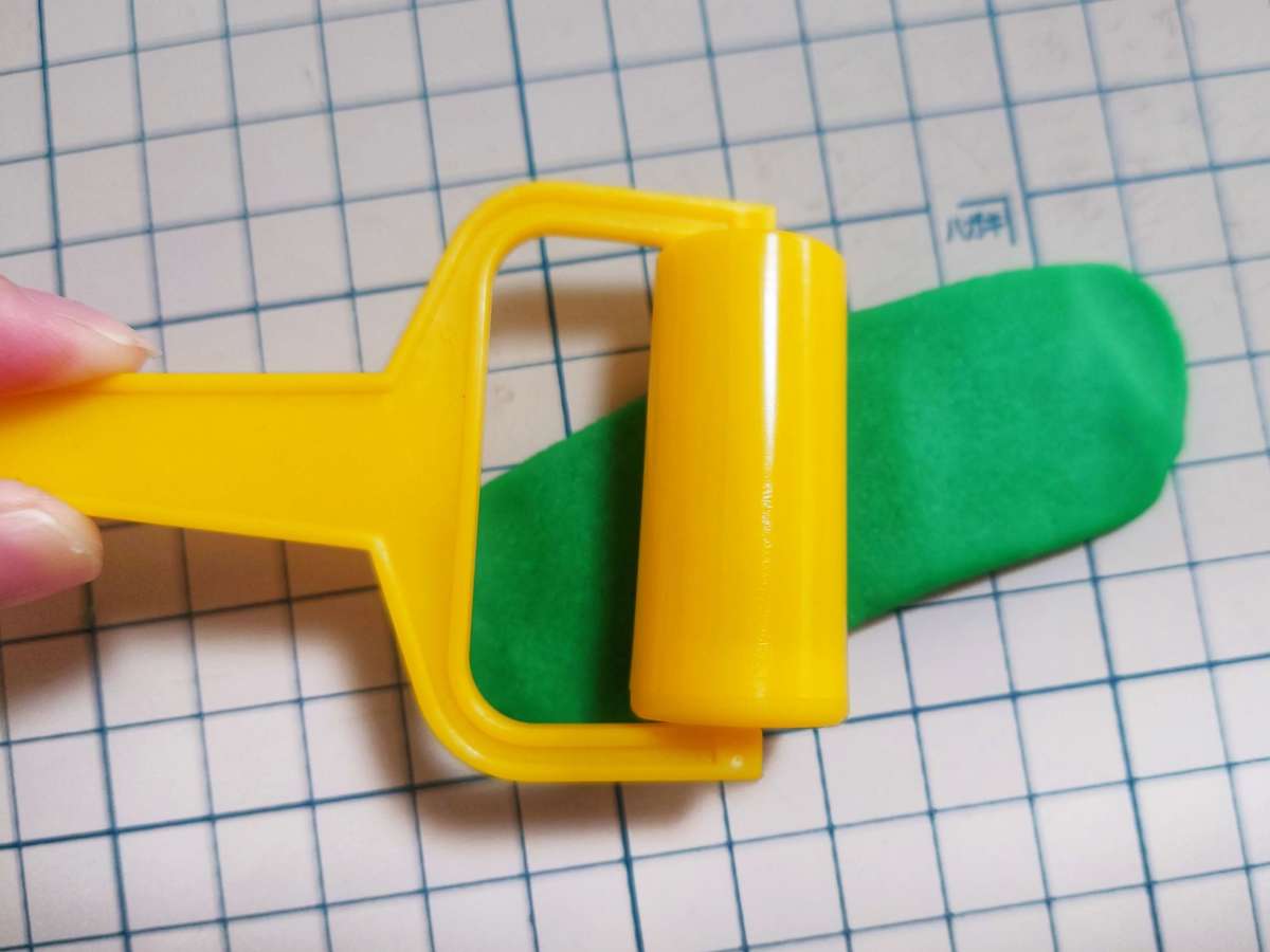 ローラーを使って、粘土を伸ばして、