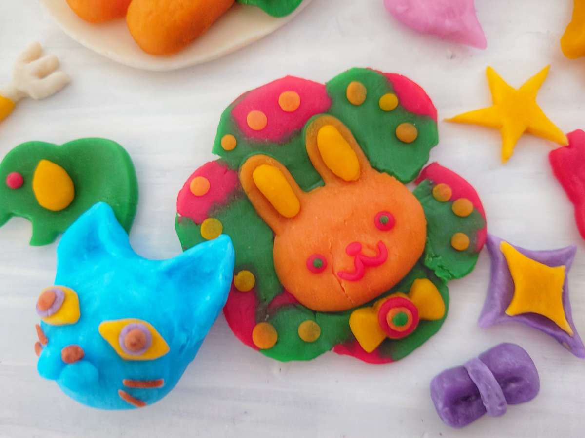 違う色の粘土を組合せて動物の目を作ってみたりと、創造力や発想力を働かせることができますよ!