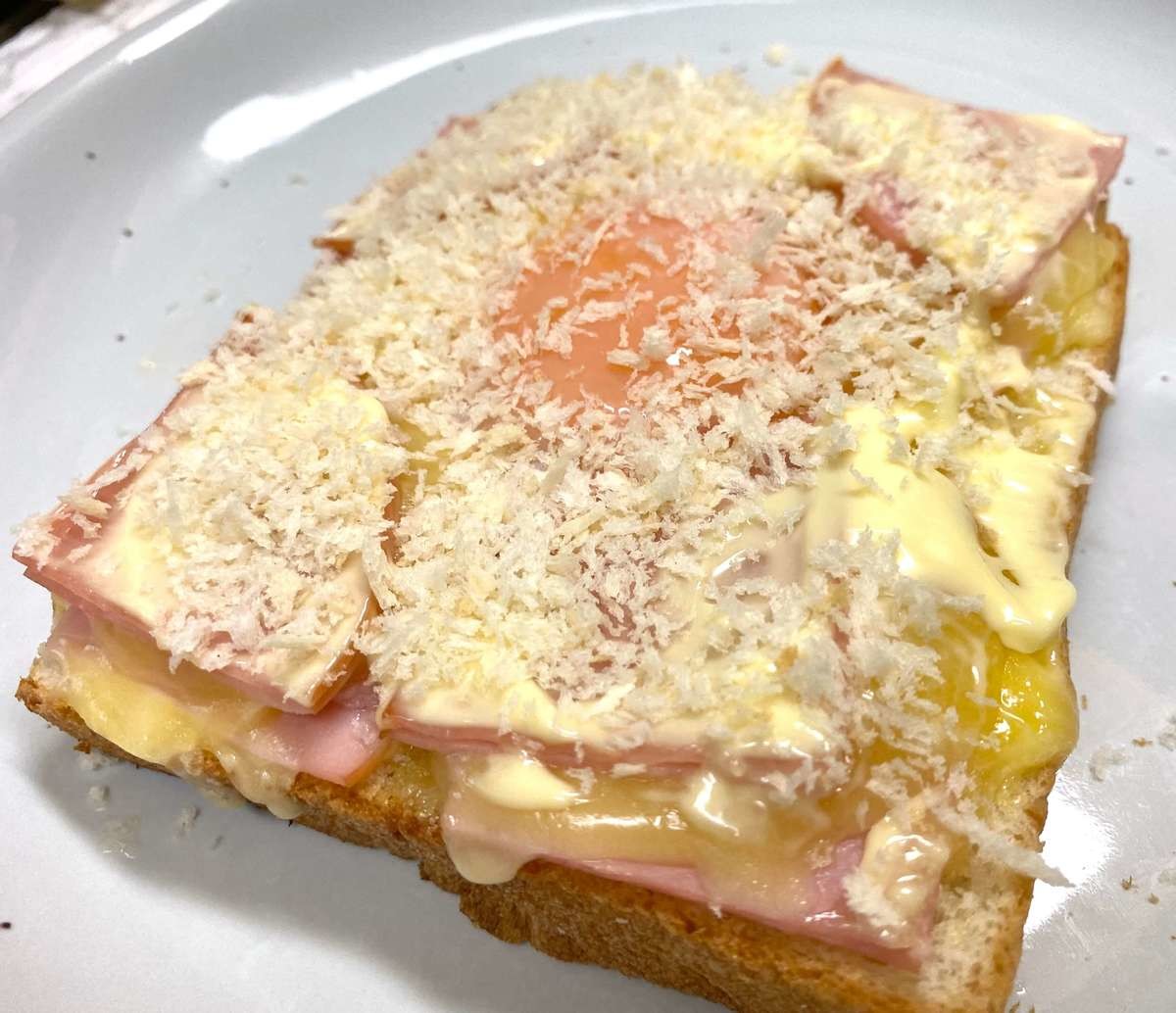 また、トースターで加熱している間に、ハムの間に入れたミックスチーズが、トロトロと溶け出てしまいます。もう少し内側にミックスチーズを乗せるか、マヨネーズで食パンの周りを囲んだ方がいいかもしれません。