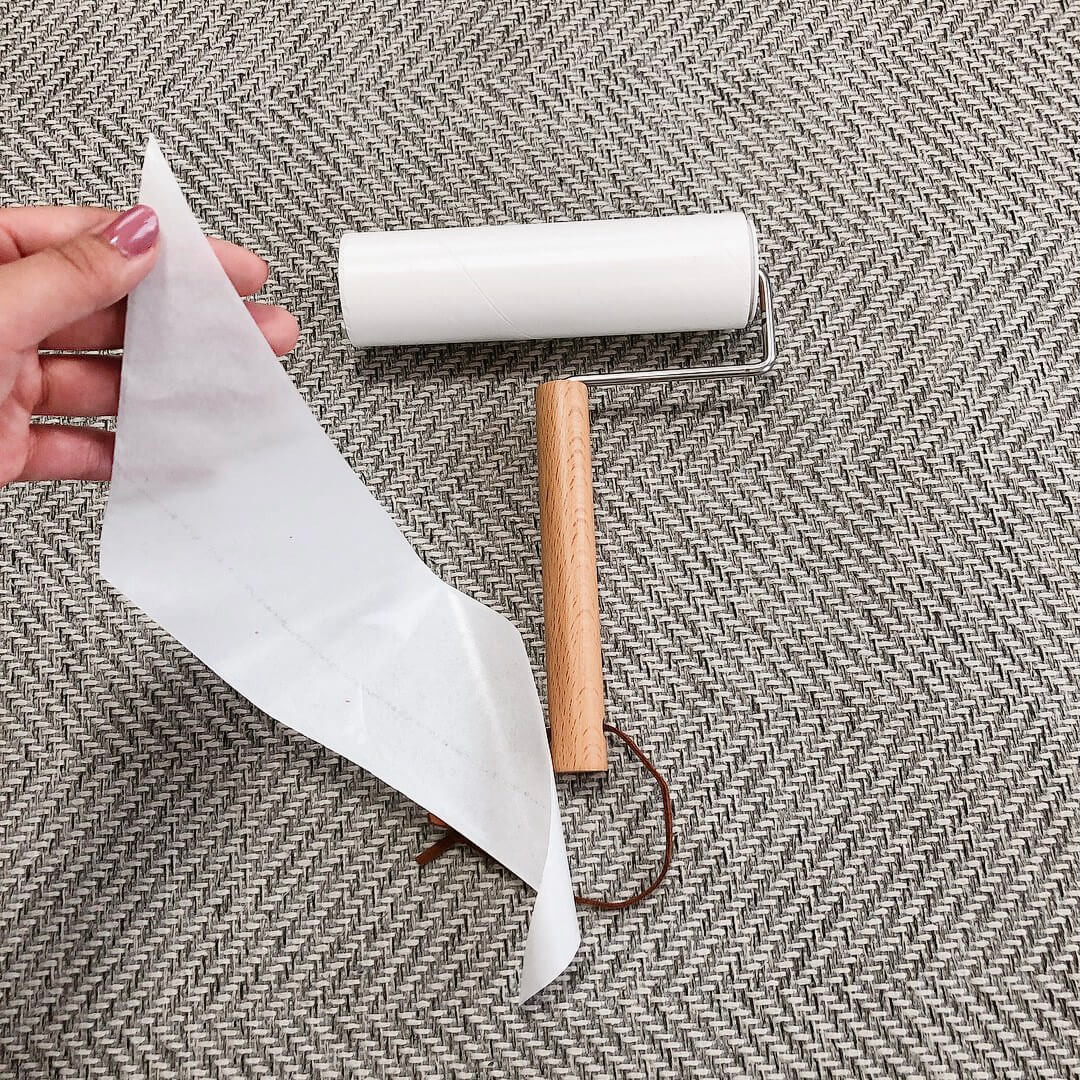 ニトリの「カーペットクリーナー プリート」用のスペアテープで、ミシン目が斜めに入っているため、端っこをぺろっと剥がすだけで新しい面が出てくる優れものです。