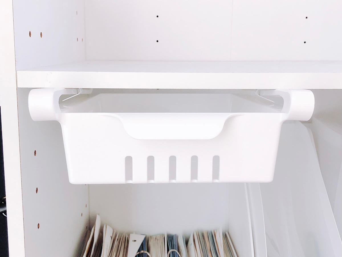 これなら簡単に引き出し収納が完成!棚板の上にも出ないため、邪魔になりません♪