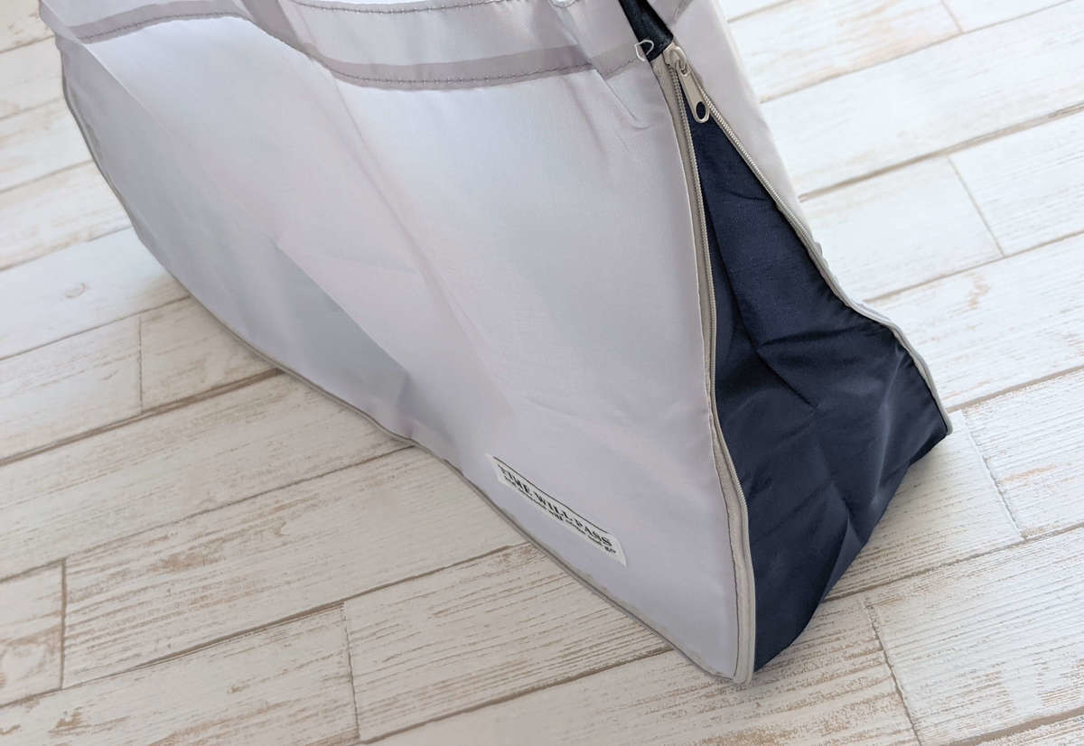 こちらも側面にあるファスナーを開くだけで簡単に拡張できます。 必要なときにサッと広げられるので便利です。