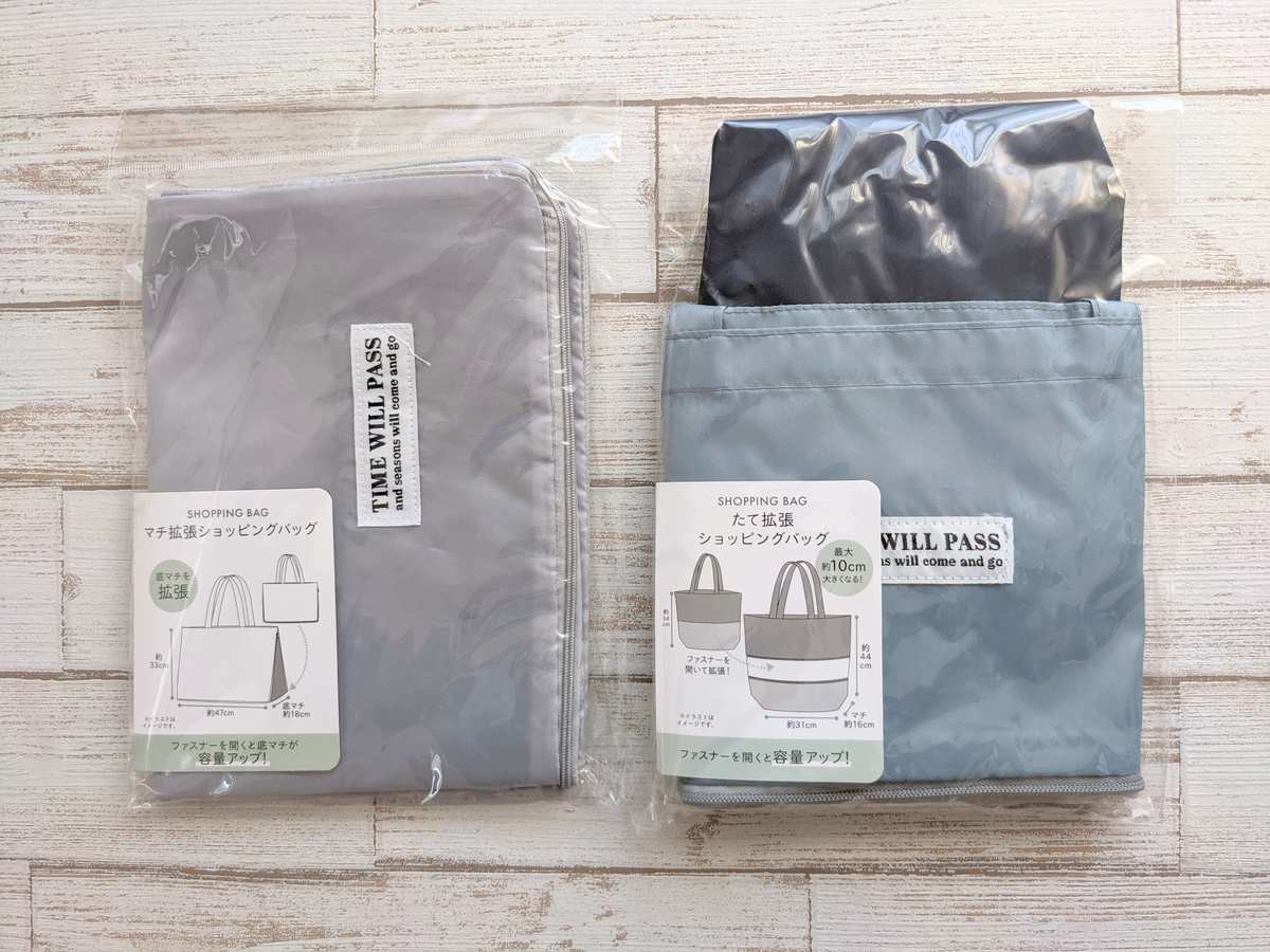 右:スリーコインズ「たて拡張ショッピングバッグ」330円(税込)