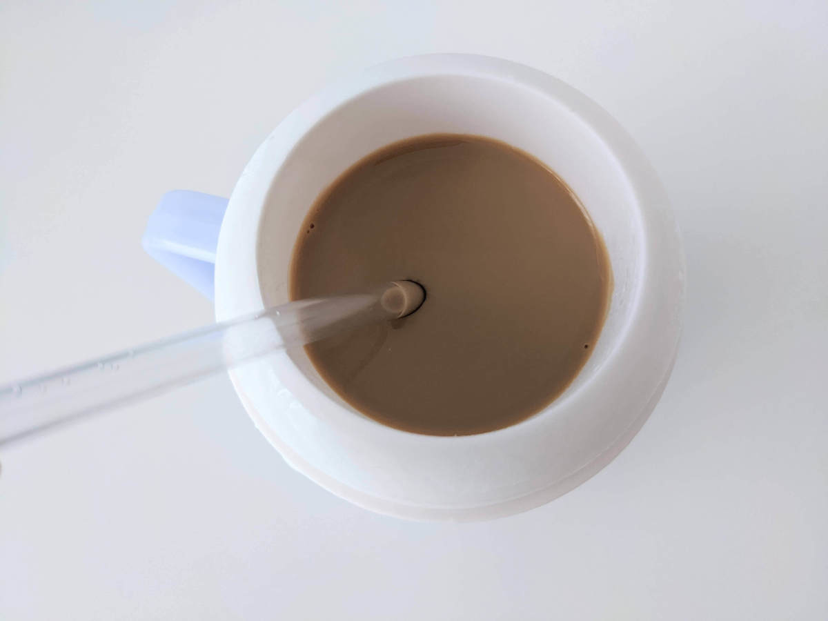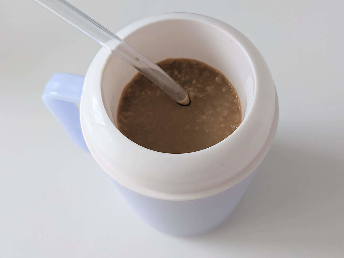 今回はカフェオレを使って、手作りフローズンに挑戦したいと思います! 一晩凍らせた内カップを外カップにセットし、冷やしておいたカフェオレ250mlを注ぎます。