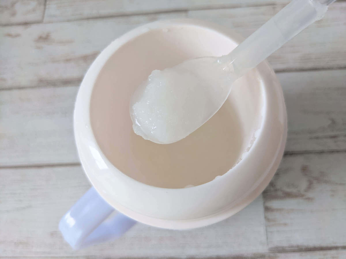 最初は混ぜてても何の変化もなく、凍らないのではと正直焦りましたが……。 10分過ぎた頃から徐々に凍り始めたので、諦めずに混ぜ続けてください!