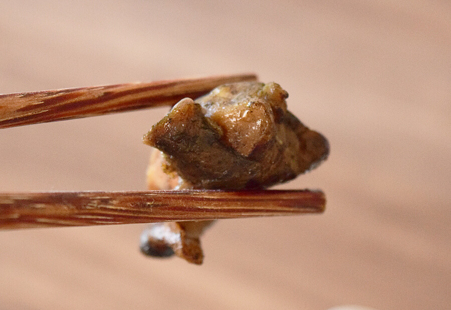 食べた瞬間に「炭」の苦みが一気に広がります。炭火の香り、想像以上の強さでした。