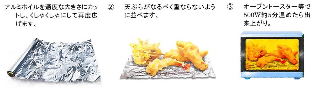余分な水分や油が落ちるので、しんなりしてしまった天ぷらもさくっと復活します。