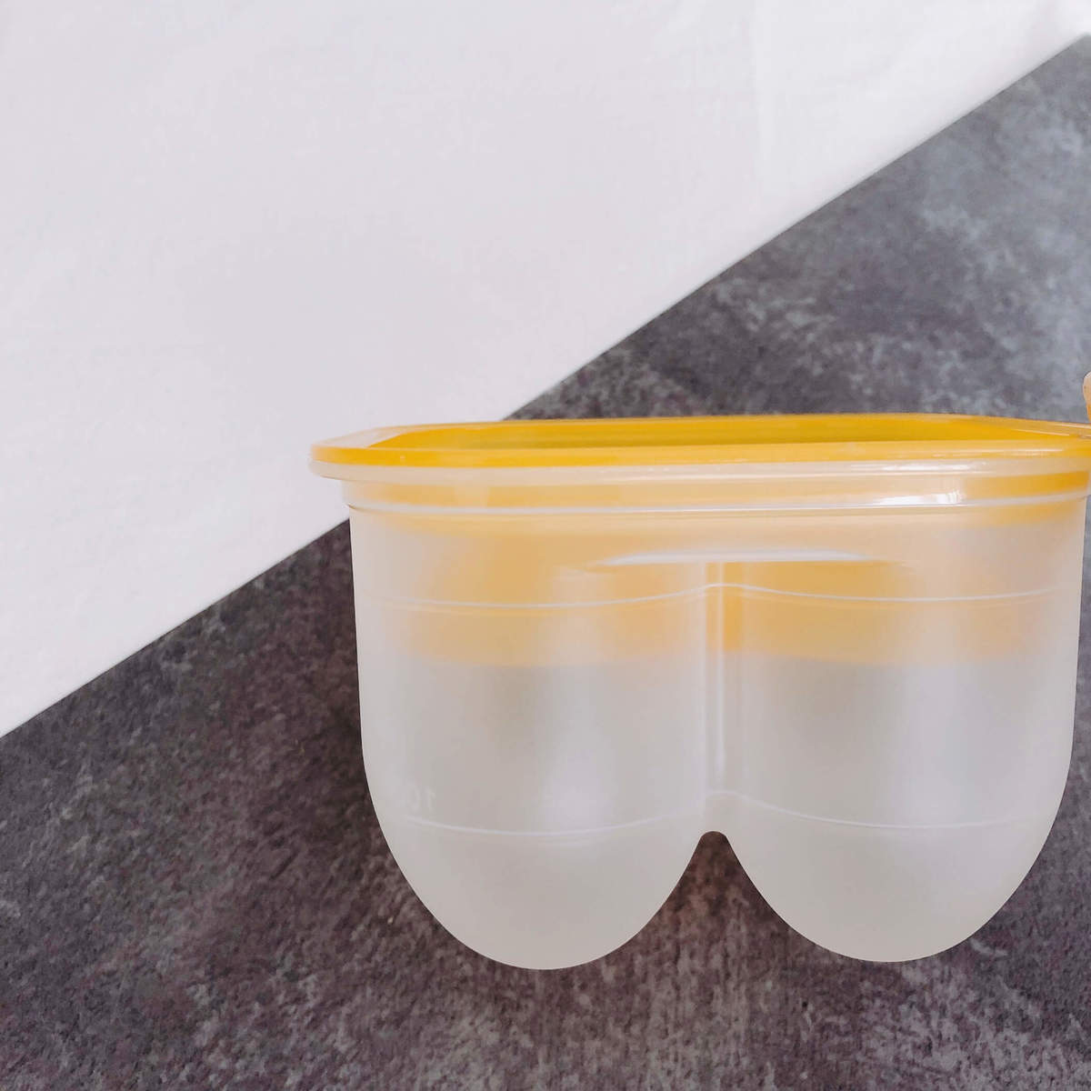 ゆで卵を先に入れた場合は、容器の内側の上部の線が調味料量の目安です。