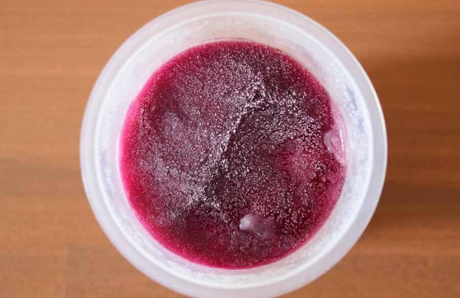 食感はシャリシャリしていて氷のよう。ぶどうの甘みが強めに出ていて、我が家の子ども達には好評でした。